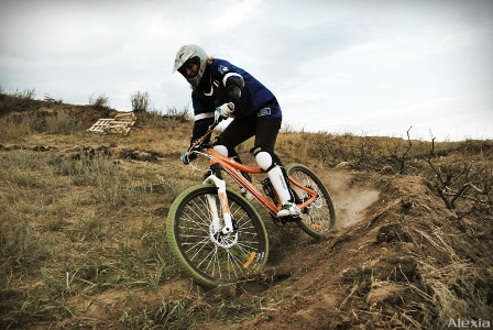 Как ты узнала про маунтинбайкинг? - " до того как села на велосипед, про него не знала практически ничего. В детстве, как и все, каталась на "Салюте". Втянули друзья, сначала каталась просто рядом с ними, потом приобрела велосипед экстремального характера и завертелось... Стала обращать внимание на то, что экстремальный маунтинбайкинг развивается у нас в России, что существуют разные дисциплины. Начала разбиратся в вело-железках, прогрессировать в катании, оттого сменила несколько велосипедов, т.к поняла что мне нужно, не без помощи друзей конечно."